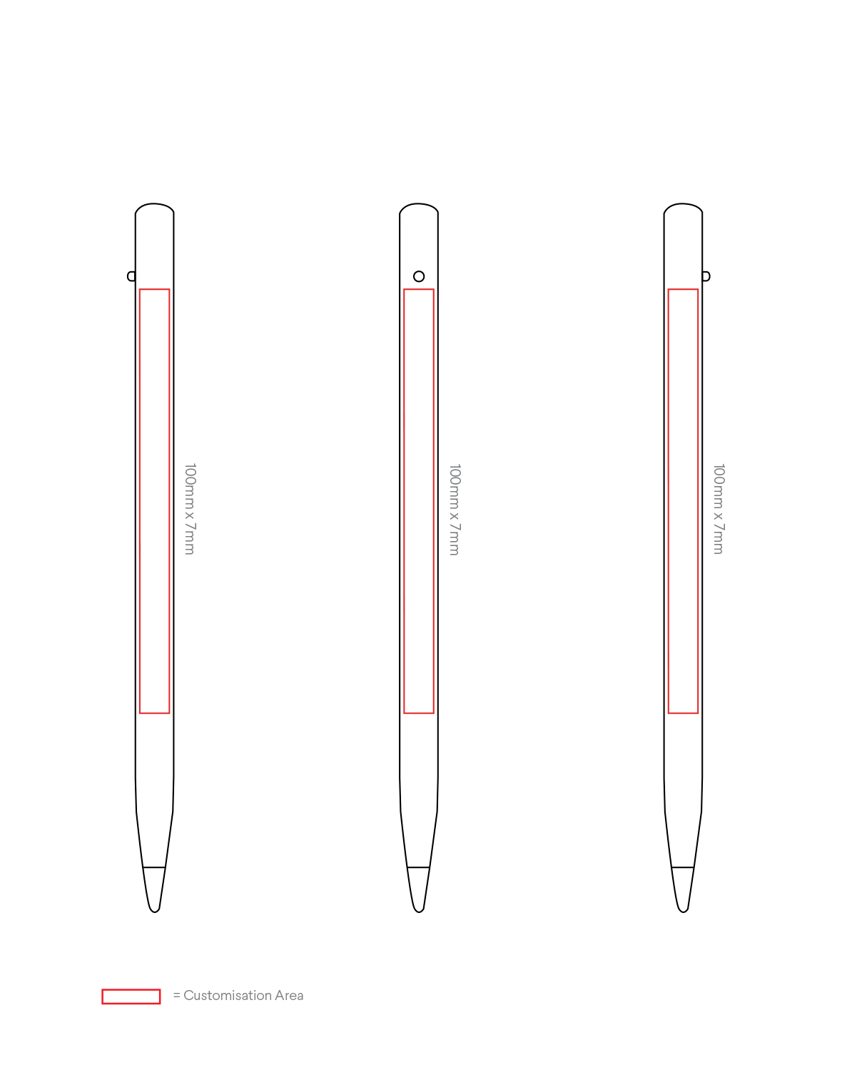 Your logo is transferred onto the pen in a single coloured ink from an engraved plate using a silicone pad. It’s a fast and versatile method suited to many different surfaces and shapes, making it ideal for pens.