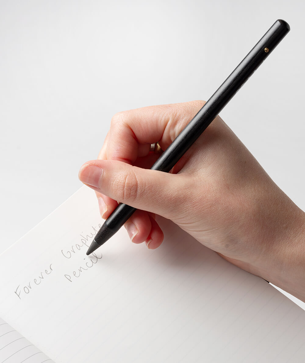 Recycled wood, graphite tip - The Forever Graphite Pencil is a durable and long-lasting writing tool. The graphite lead is smooth and produces a dark, crisp line with the ability to write up to 30,000m, lasting a significant amount of time. The pencil is made with recycled wood, including pine, black sandwood, and oak, which makes it an eco-friendly choice.